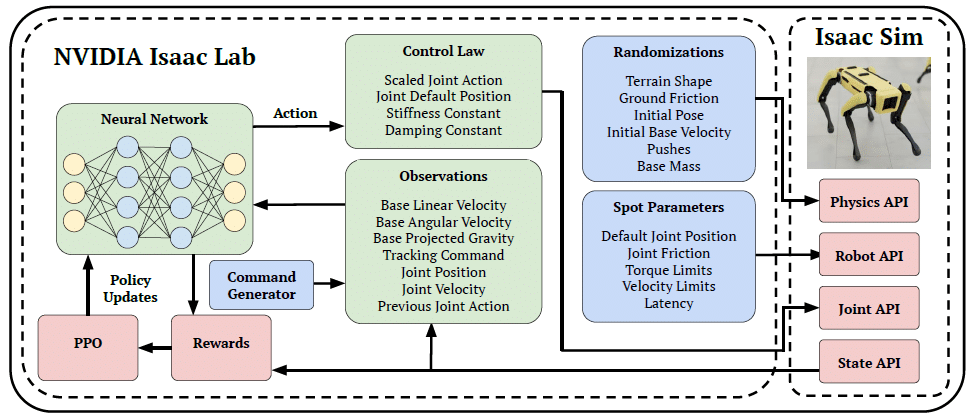 This work presents an overview of the technical details behind a high-performance reinforcement learning policy deployment with the Spot RL Researcher Development Kit for low-level motor access on Boston Dynamics’ Spot. This represents the first public demonstration of an end-to-end reinforcement learning policy deployed on Spot hardware with training code publicly available through NVIDIA Isaac Lab and deployment code available through Boston Dynamics. We utilize Wasserstein Distance and Maximum Mean Discrepancy to quantify the distributional dissimilarity of data collected on hardware and in simulation to measure our sim-to-real gap. We use these measures as a scoring function for the Covariance Matrix Adaptation Evolution Strategy to optimize simulated parameters that are unknown or difficult to measure from Spot. Our procedure for modeling and training produces high-quality reinforcement learning policies capable of multiple gaits, including a flight phase. we deploy policies capable of over 5.2m/s locomotion, more than triple Spot’s default controller maximum speed, robustness to slippery surfaces, disturbance rejection, and overall agility previously unseen on Spot. We detail our method and release our code to support future work on Spot with the low-level API.